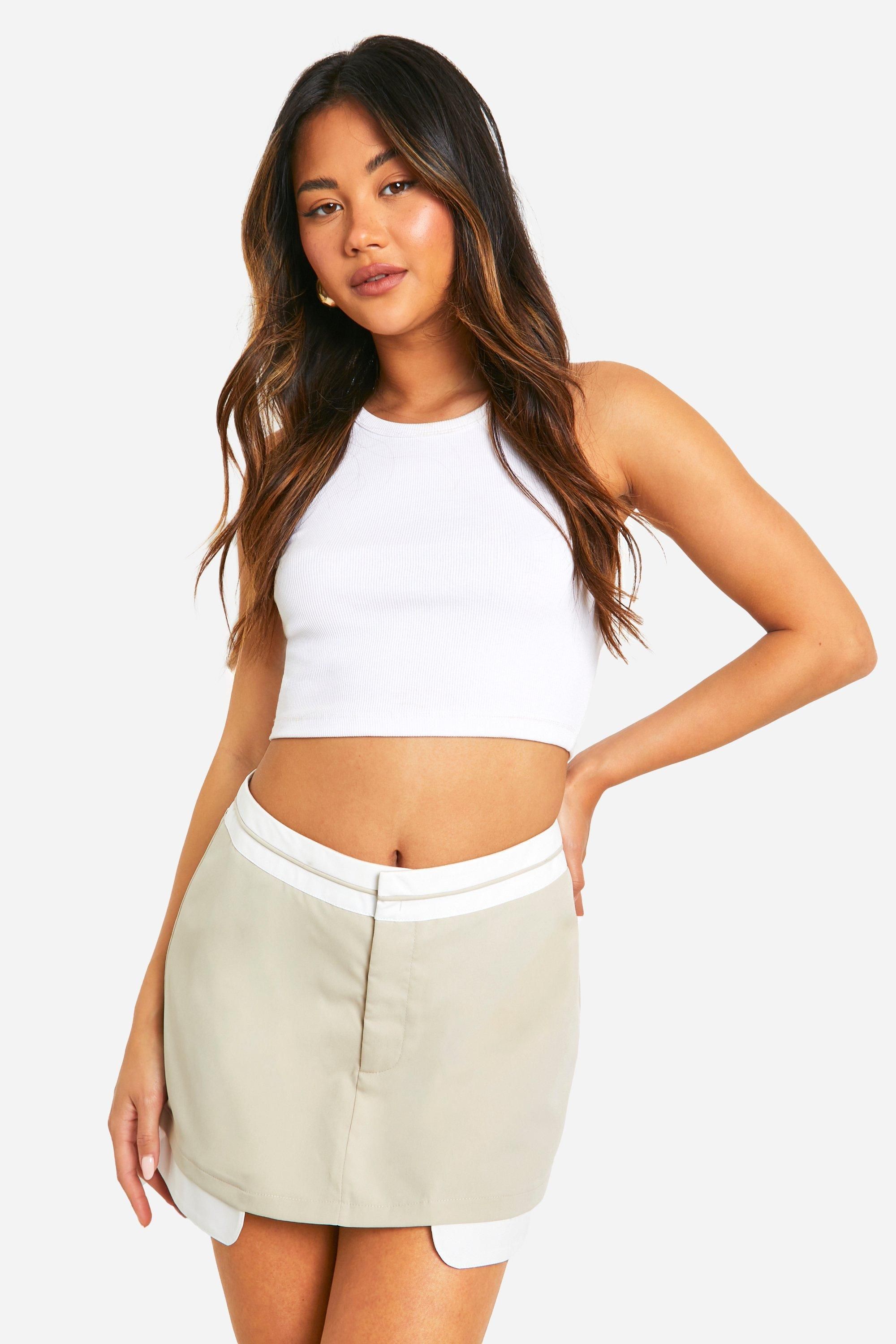 Boohoo Womens Contrast Waist Tailored Skort - Beige - Size 14 UK | Boohoo Sale | Discount Designer Brands