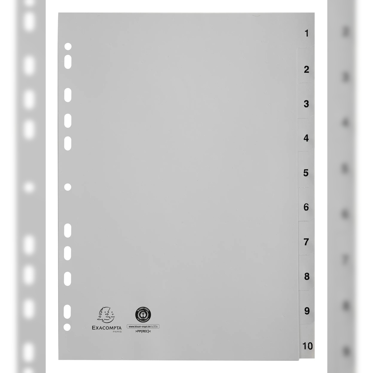 Exacompta 1710E 20x Register A4 aus Recycling-PP grau 120µ mit bedruckten Taben 1-10, 10 Positionen - Grau