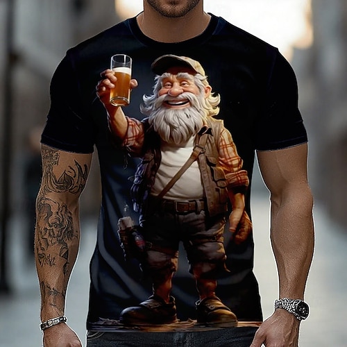 Herren-T-Shirt mit fröhlichem, altem Mann und zwei Biergläsern – 3D-Cartoon-Opa-Figur, humorvoll, animiert, Kurzarm, normale Passform, Geschenk für Partys, Bars, Clubs, Designer-Kleidung
