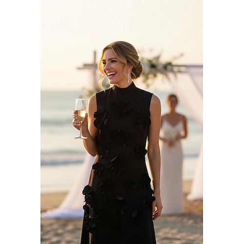 Tubino Colonna Lunghezza al pavimento Vestito da Festa Abito da invitata a nozze Abiti per invitati a matrimoni Elegante Senza Maniche Collo Alto Matrimonio Abbigliamento da Festa con Fiori 3D
