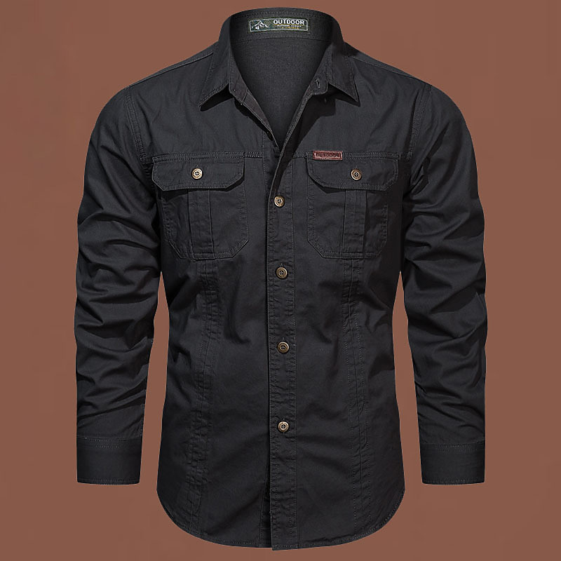 Men's Cargo Shirt Hiking Shirt Waterproof Shirt Long Sleeve Turndown Top Outdoor Breathable Cotton Black Army Green Khaki Hunting Workout Traveling
