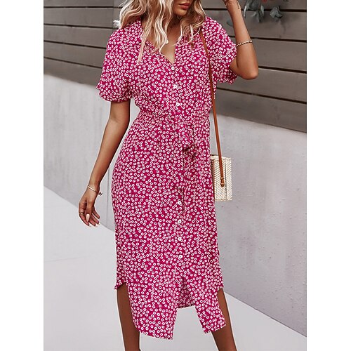 Per donna Abito Midi Abito a trapezio Vacanza Casual All'aperto Uscire Vestibilità regolare Floreale Grafico Manica Corta Collo ripiegato Nero Giallo Rosa Azzurro cielo Estate Primavera
