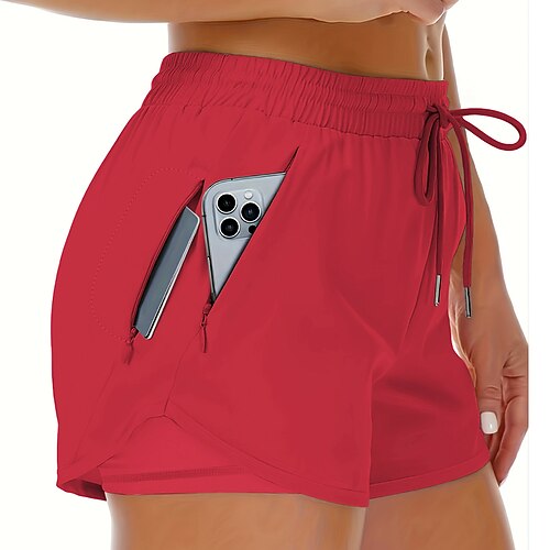 Damen Sportliche Shorts Shorts Sommershorts Strandshorts Urlaub Mode Alltagstauglich Kurz Mittlere Taille Kordelzug Elastischer Bund Reißverschlusstasche Schnelltrocknend Weich Atmungsaktiv