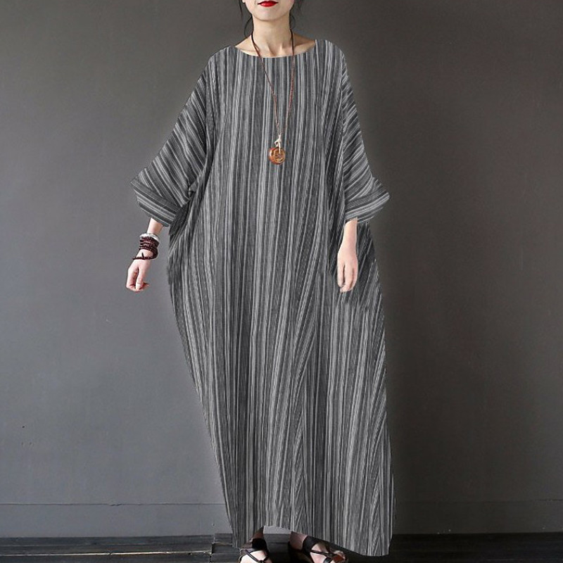 Women's Long Dress Maxi Dress Cotton Blend Classic Outdoor Vacation Holiday Regular Fit Striped Long Sleeve Crew Neck Black Summer