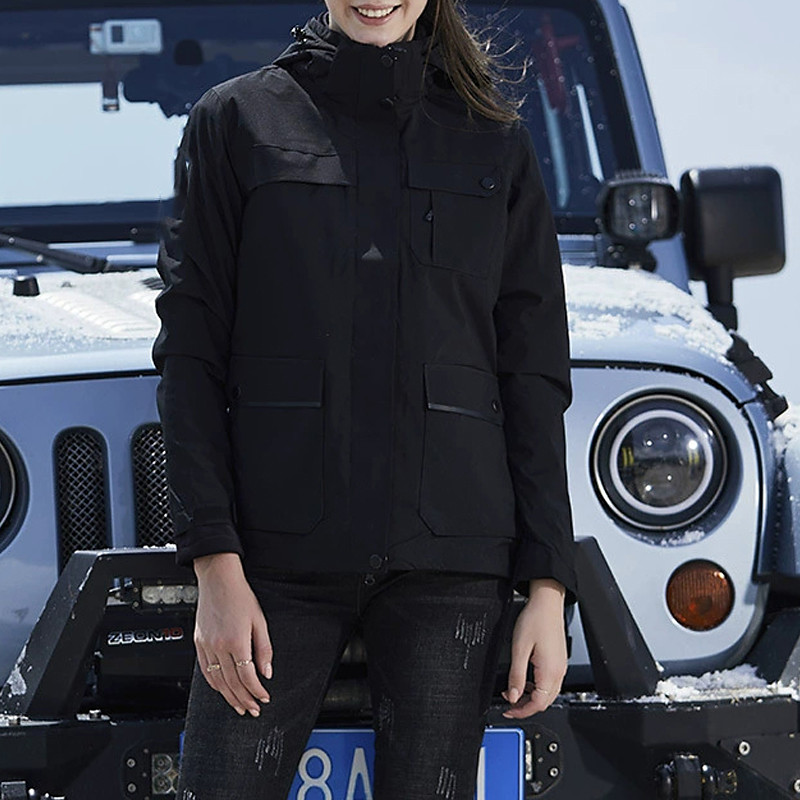 Women's 3-in-1WaterproofDownJacket With Hood Windproof Comfortable Zipper Pocket Casual Color Block Outdoor Vacation Street Daily Wear Zipper Short Hooded Regular Fit Long Sleeve Outerwear Black