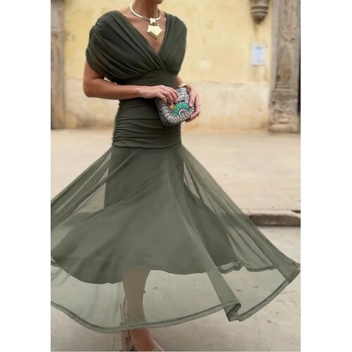 Per donna Abito Midi Tubino Vacanza Compleanno Spiaggia Feste Uscire Vestibilità regolare Tinta unica Manica Corta Scollo a V Marrone scuro Verde scuro blu navy Rosso Estate Primavera