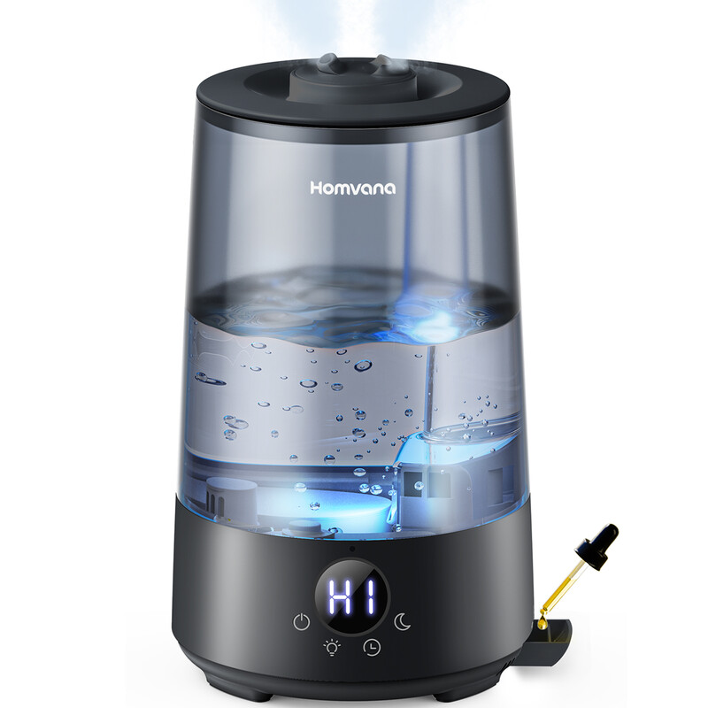 Homvana 3,6L Verdunster H101 Schwarz - Top-Fill, SilentSpary™-Technologie, 360° kühler Nebel, 34 Std. langlebig, leise 16 dB, BPA-frei, Aromadiffuser, 7-farbiger Nachtlichter.