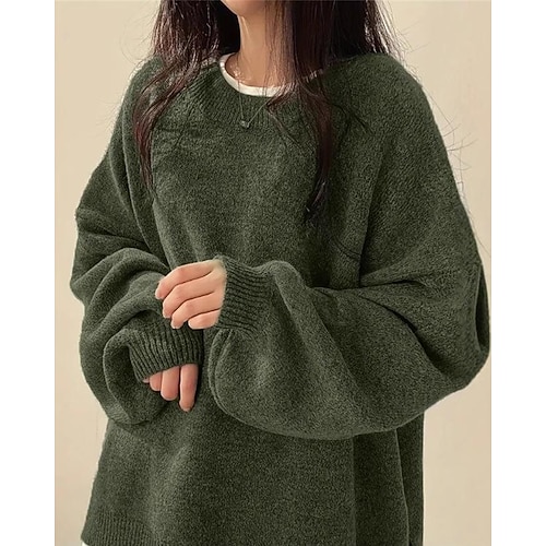 Per donna Felpa Casual Morbido Colore Puro A Coste Girocollo Lavorato a maglia Manica Lunga Top Regolari Maglia All'aperto Quotidiano Weekend Nero Rosa Autunno Inverno