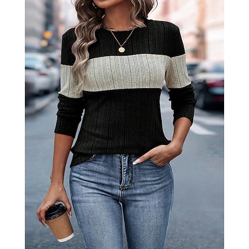 Per donna Blusa con texture Maglietta Semplice Casual Manica Lunga Girocollo Top Regolari Quotidiano Weekend Nero Vino Verde militare Blu Marrone Autunno
