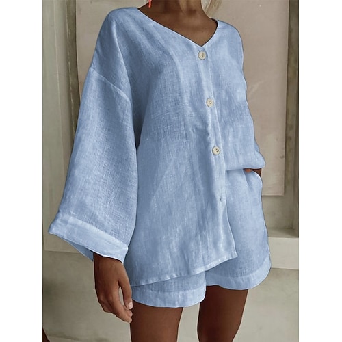 Per donna Moda Streetwear Set di Pantaloncini Bolero Top Manica Lunga Scollo a V Tinta unica Casuale Quotidiano All'aperto Nero Bianco Azzurro cielo Estate Vestibilità comoda