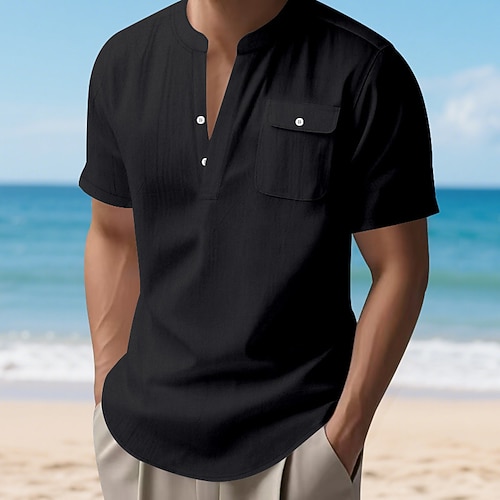 Per uomo Camicia Camicia di lino Camicia casual Camicia con Bottoni Camicia di cotone Semplice Vacanza Streetwear Nero Bianco Cachi Azzurro Manica Corta Colletto alla coreana Estate Abbigliamento