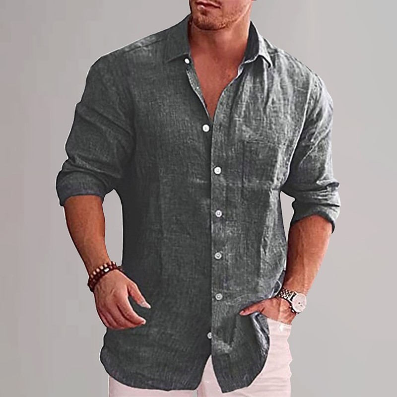 Men's Cotton Linen Shirt Plain Vacation Black White Wine Sky Blue Long Sleeve Lapel Clothing Apparel