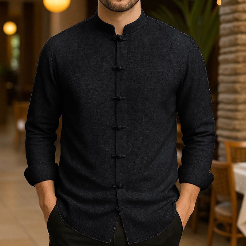 Men's Cotton Linen Shirt Solid / Plain Color Vacation Black White Light Green Pink Long Sleeve Grandad Clothing Apparel