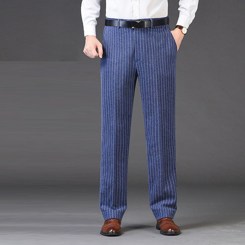 Men's Dress Pants Trousers Casual Pants Flat Front Pants Pocket Plaid Stripe Comfort Warm Wedding Business Casual Retro Vintage Classic Dark Khaki Royal Blue High Waist Stretchy