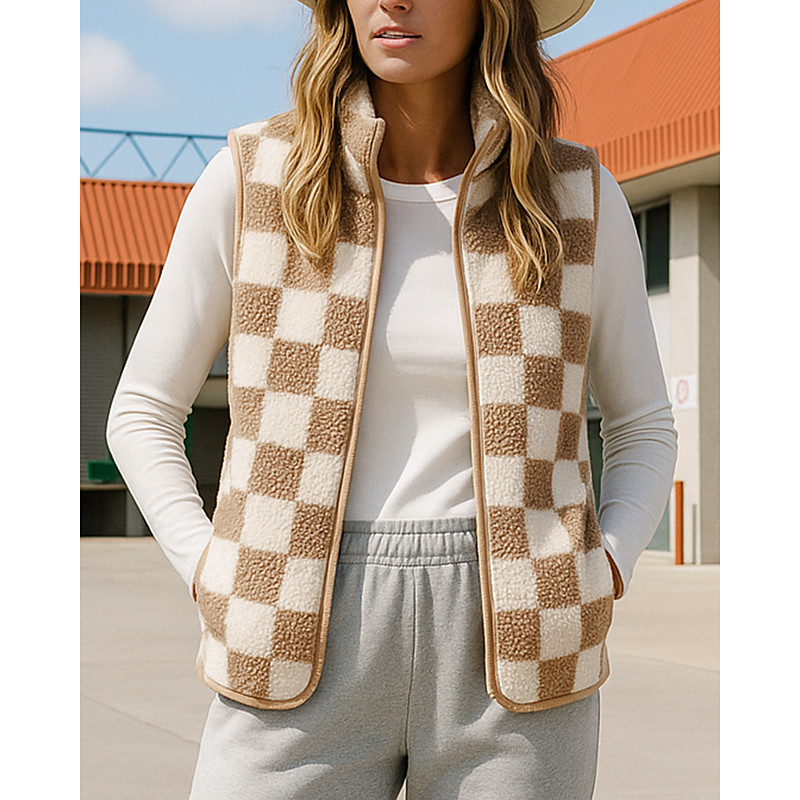Women's Fall Top Winter Coat Fleece Vest Long Sleeve Top Athleisure Fall Plaid Checkered Warm Outdoor Travel Sports Sportswear Activewear Black Pink Khaki