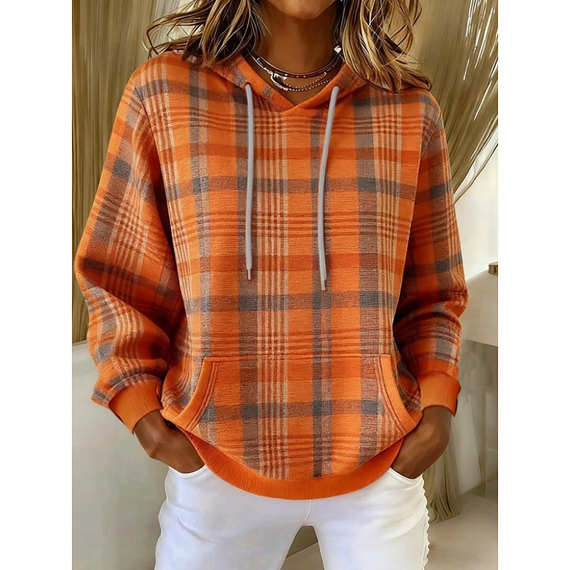 Women's Pullover Hoodie Sweatshirt Graphic Geometric Plaid Warm Vintage Casual Long Sleeve Hooded Regular Tops Street Dailywear Casual Patchwork Print Front Pocket Maroon Orange Brown Spring Fall
