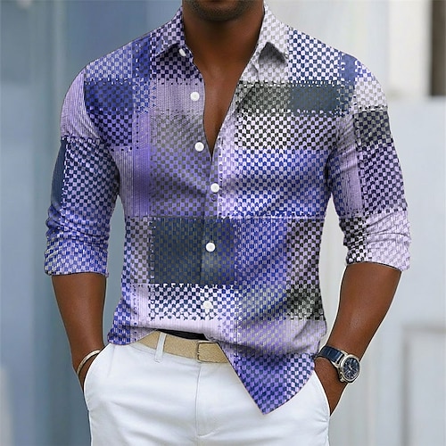 Per uomo Geometrico Blocco di colori Motivi a griglia / plaid Camicia Camicia con Bottoni Manica Lunga Moda Casual All'aperto Abbigliamento Quotidiano Primavera Autunno Collo ripiegato Stampa 3D