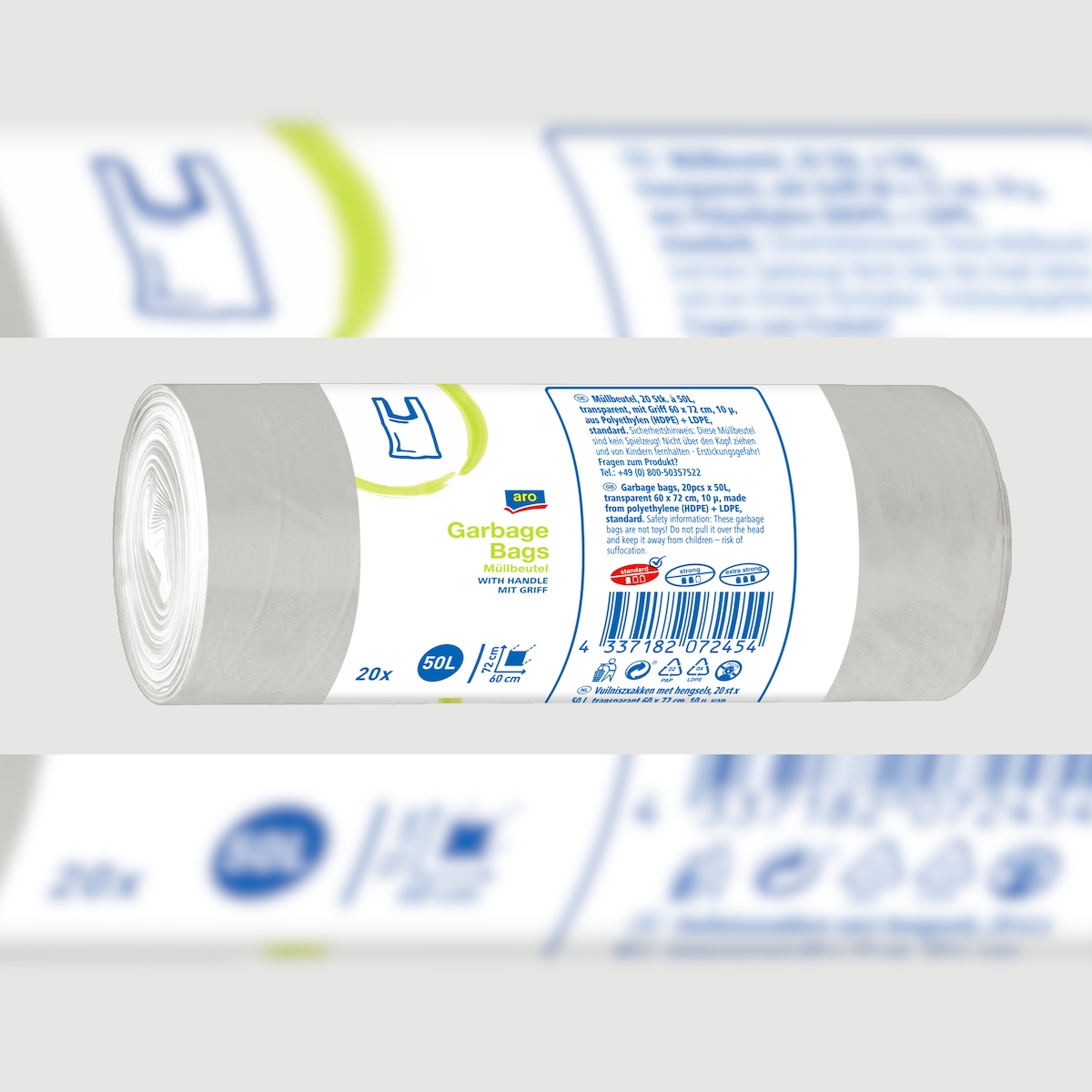 aro Müllbeutel, HDPE / LDPE, 10µm, 60 x 72 cm, 50 L, transparent, 6 Rollen x 20 Stück (120 Stück)