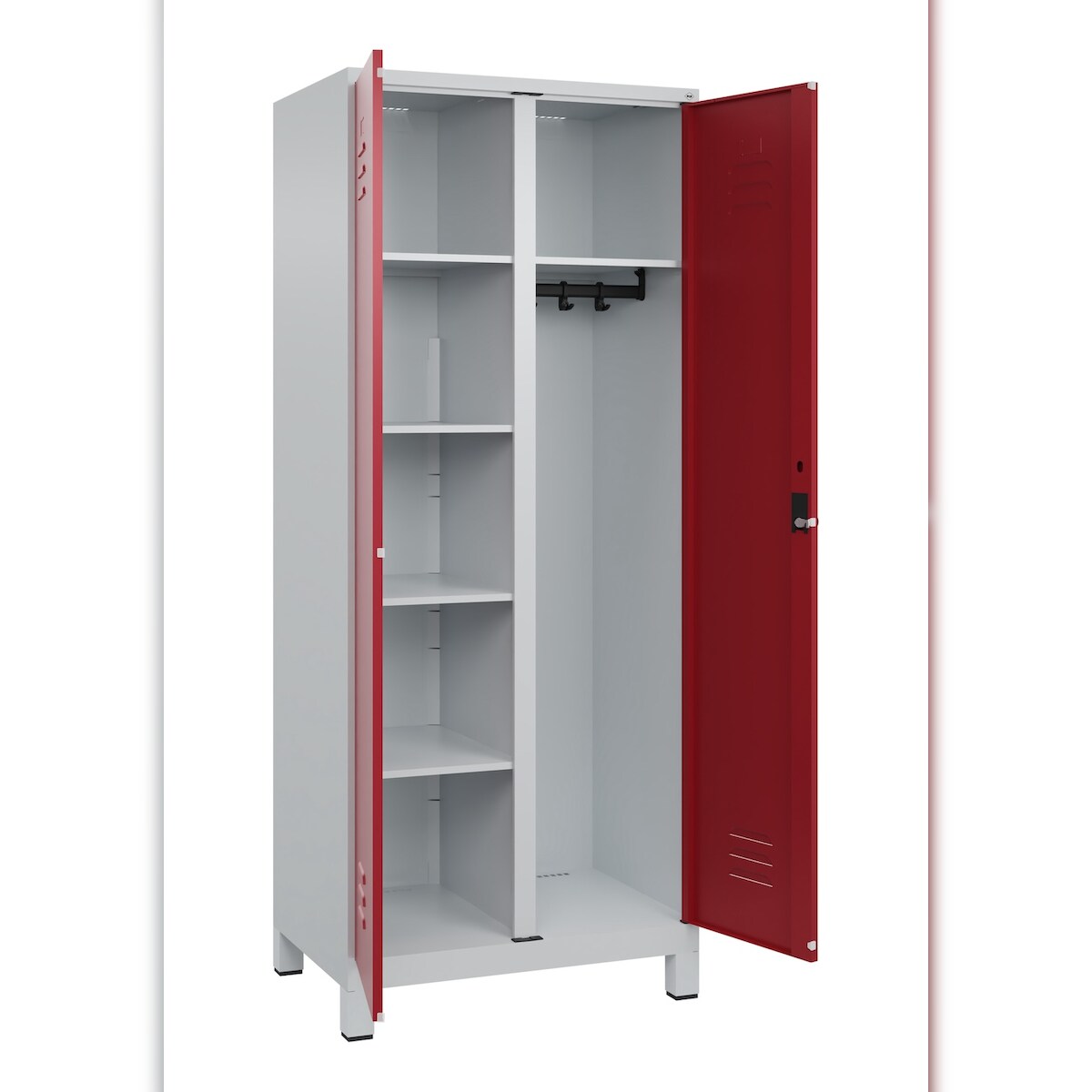 C+P Aufbewahrungs Doppel-Spind Classic PLUS, Füßen, 2 Abteile, 5 Fachböden, HxBxT 195x80x50cm, Sicherheitsdrehriegel, Hellgrau/Rubinrot von PROREGAL