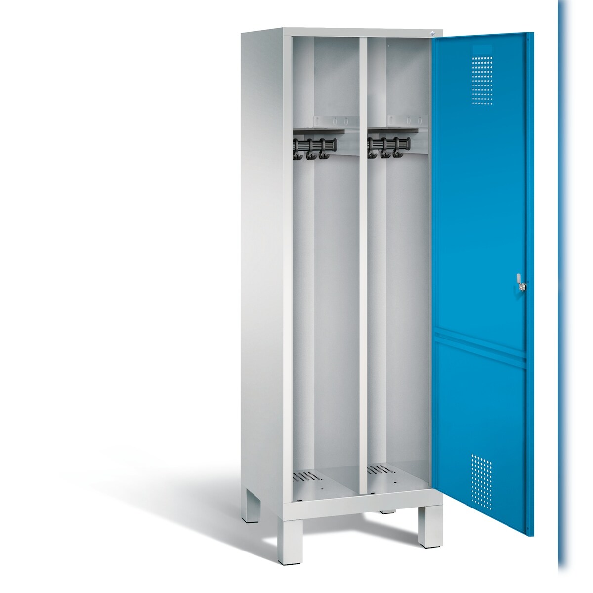 C+P Doppel-Spind Classic PLUS, Füßen, 4 Abteile, HxBxT 195x120x50cm, Zylinderschloss, Hellgrau/Lichtblau von PROREGAL