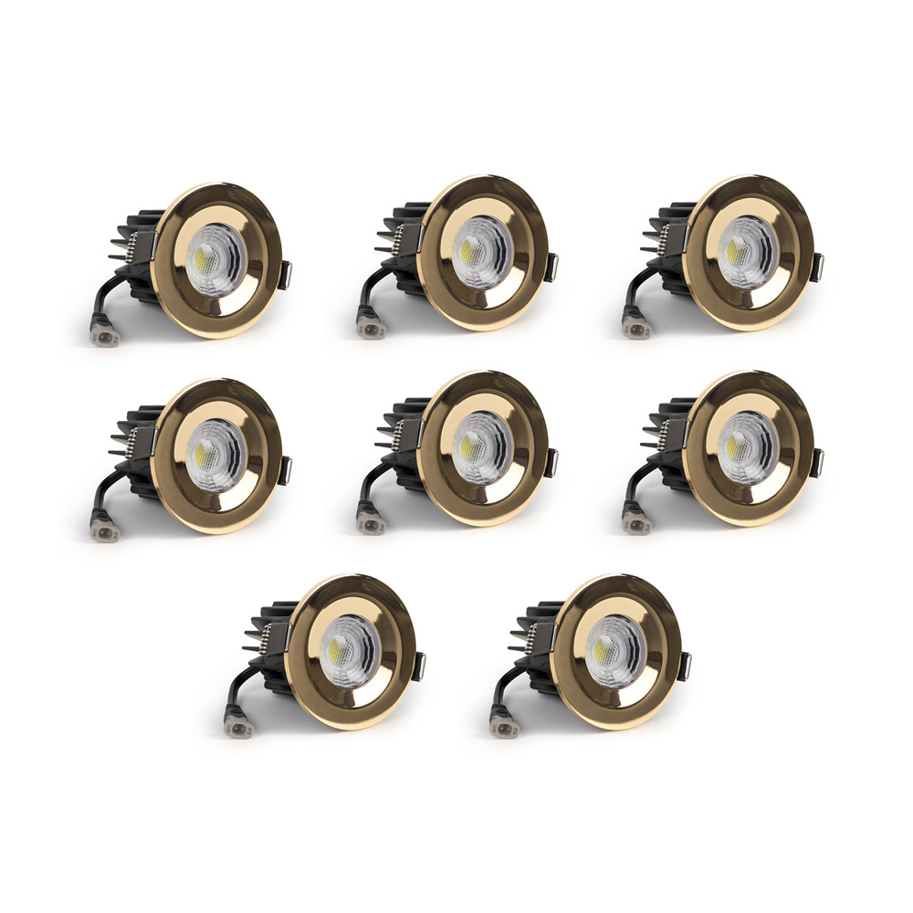 8 Pack - Soho Lighting Polished Brass LED Downlights - Fire Rated - Fixed - IP65 - CCT Switch - High CRI - Dimmable