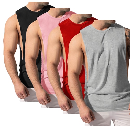 Herren Tank Top Weste Unterhemd Ärmelloses Shirt Ärmellos Rundhalsausschnitt Sommer Ganzjahres Einfach Mode Klassisch Bequem 4 Teile Mehrfachpackung Straße Lässig Sport A B C Top T-Shirt für Herren