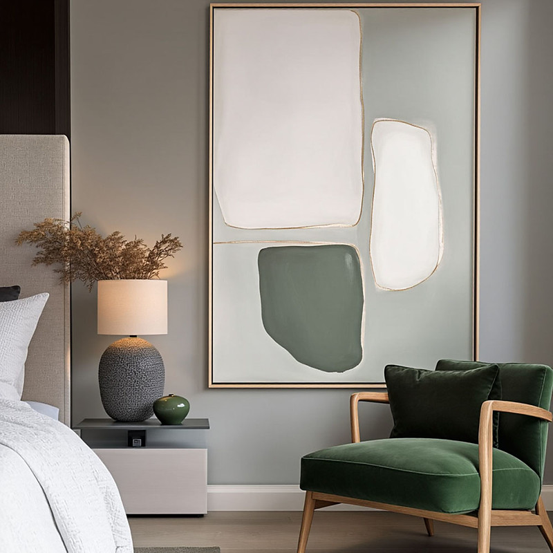 Large Green Beige Black Geometric Abstract Painting Green Abstract Art Beige Wabi-Sabi Wall Art Black Minimalist Art Boho Neutral Wall Decoration
