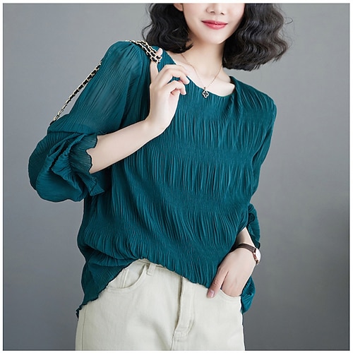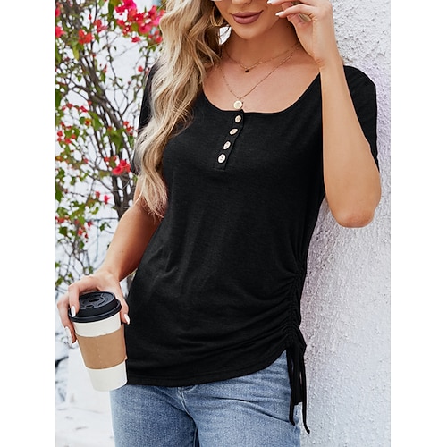 Per donna Camicia Blusa Tinta unica Essenziale Informale Manica corta Girocollo Top regolari Giornaliero Con balze Bianco Verde Estate