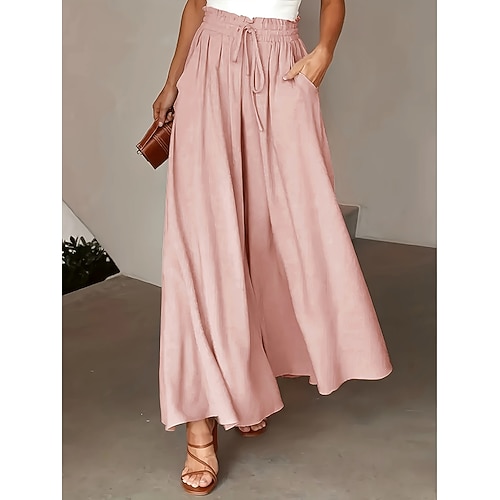 Per donna Gamba larga Chinos Pantaloni Eleganti Vacanza Vintage Streetwear Lunghezza intera Naturale Tinta unica Semplice Elastico in vita Stampato Comodo All'aperto Confortevole Inelastico