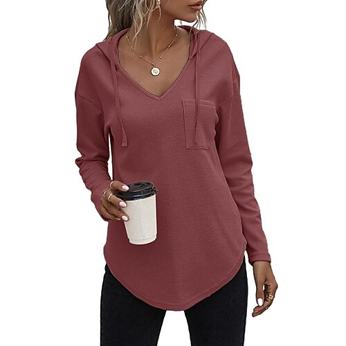 Per donna Blusa Tinta unica Elegante Casual Manica Lunga Scollo a V Top Regolari Quotidiano Tasca Verde militare Rosso Blu Verde Primavera Autunno Inverno