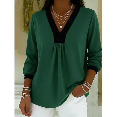 Per donna Camicia Tinta unica Elegante Vintage Essenziale Manica Lunga Scollo a V Top Regolari Quotidiano Blu Giallo Verde Estate Primavera Autunno Inverno