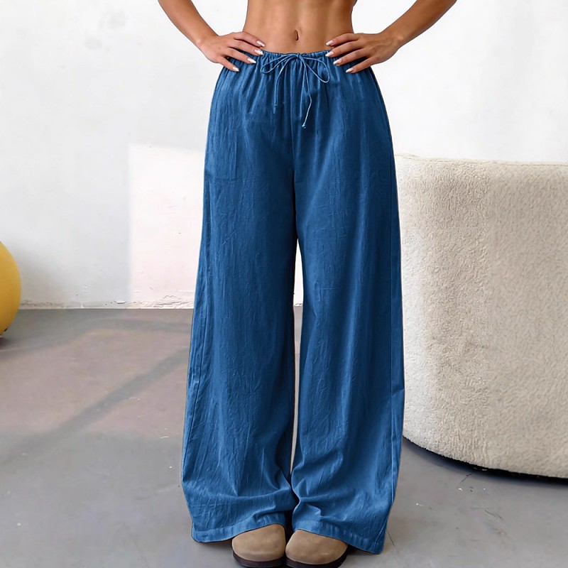 Women's Faux Cotton Linen Wide Leg Baggy Pants Vacation Fashion Basic Full Length Natural Plain Pocket Elastic Waist Comfort Quick Dry Soft Inelastic Outdoor Streetwear Beach Blue White Brown Green