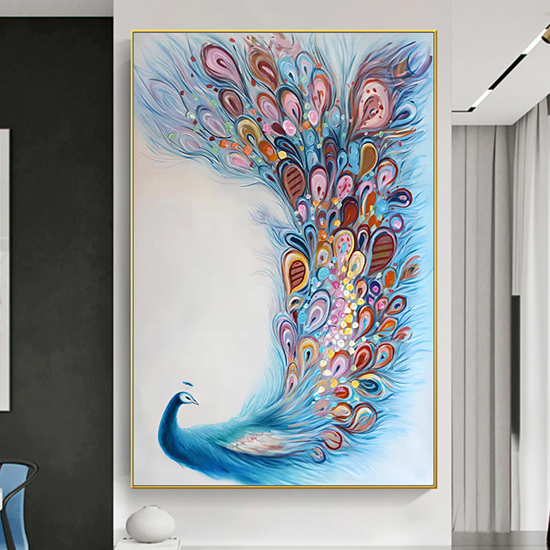 Mintura Handmade Abstract Animal Peacock Oil Paintings On Canvas Wall Art Decoration Modern Picture For Home Decor Rolled Frameless Unstretched Painting