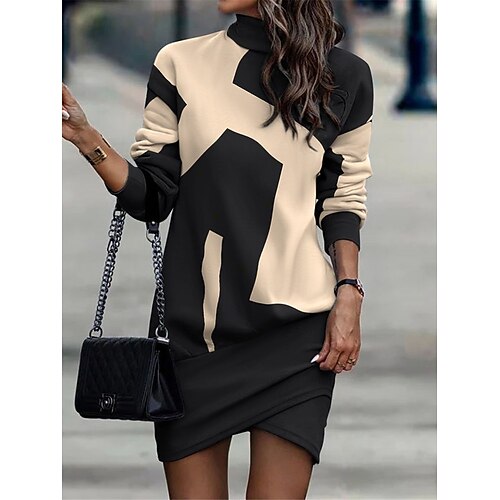 Per donna Mini abito Abito casual Informale Giornaliero Standard Ambra A quadri Manica lunga A collo alto Nero Oro Cachi Primavera Autunno Inverno