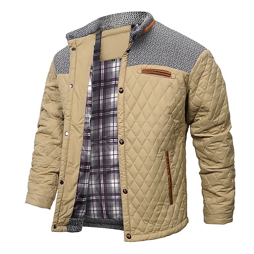 Per uomo Giacca trapuntata Giacca Casual Vacanza Quotidiano Caldo Patchwork Tasca Autunno Inverno Blocco di colori Moda Classico Collo alla coreana Regolare Nero Blu Cachi Verde militare Giacca