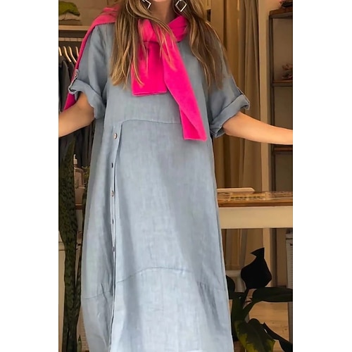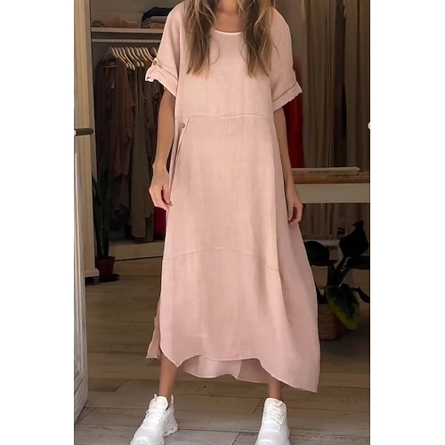 Per donna Abito lungo maxi Abiti in cotone e lino Vestito Casual Moda Essenziale Moderno Quotidiano Vacanza Uscire Vestibilità comoda Semplice Manica 3/4 Girocollo Blu Rosa Rosso Verde Primavera