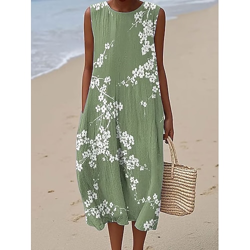 Per donna Abito Midi Abito a Tubino Vestito Estivo Abito a trapezio Vacanza Casual Boho Spiaggia Feste Vestibilità comoda Floreale Grafico Senza Maniche Girocollo Blu Viola Verde Cachi Estate
