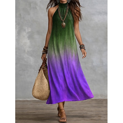Per donna Abito maxi Vestito Casual Vestito in Chiffon Vestito a ruota Abiti Boho Chic Bohemien Vacanza Tropicale Spiaggia Ferie Data Vestibilità comoda Ombre Grafico Senza Maniche All'americana Blu