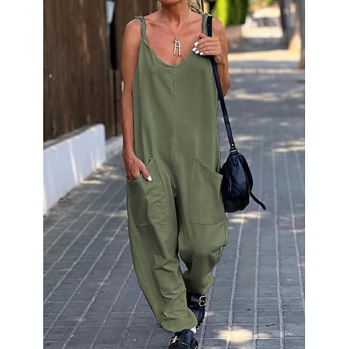 Per donna Tuta Attivo Tinta unica Senza Maniche Harem Collo a U Tasca Quotidiano Vacanza Vestibilità comoda Nero Bianco Rosa Estate