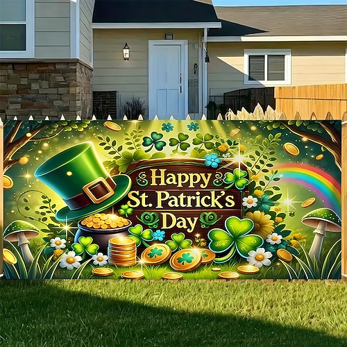 Festa di San Patrizio arazzo Copertura per porta del garage Grande appeso Elfo Cappello verde Carino 3D Da serata All'aperto Vacanze Sfondi di ripresa Yarda Arredamento per la casa