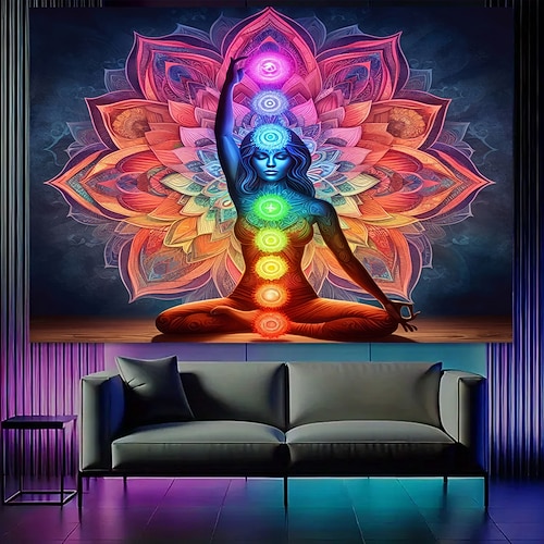 arazzo Coperta Arazzi da Parete Sette Chakra Meditazione Yoga Vintage Etnico Camera da letto Soggiorno Dormitorio Decorazioni Parete Porta Sfondo
