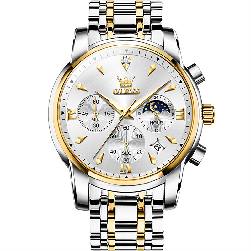 The New Olevs Stainless Steel Bracelet Business Watch With Luminous Calendar Small Three Hands 24-Hour Multi-Functional Quartz Watch Casual And Fashionable Men'S Sports Wristwatch
