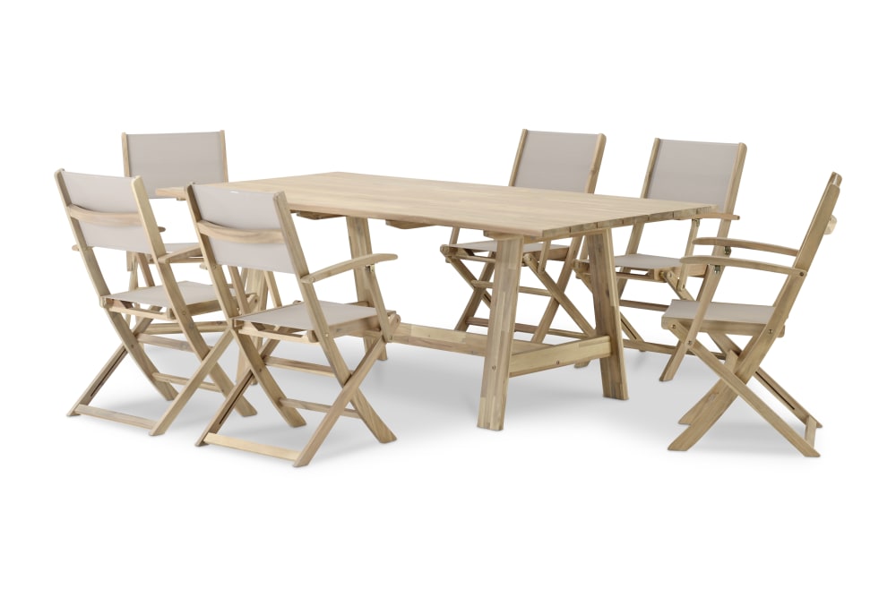 Doghe da tavolo 200x100 e 6 sedie pieghevoli tessuto beige