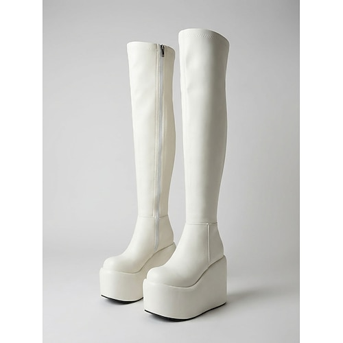 Stivali da donna bianchi sopra il ginocchio con plateau, stivali sexy con tacco alto fino alla coscia per feste notturne, scarpe da club con plateau grosso per ballare, festival abbigliamento da sera