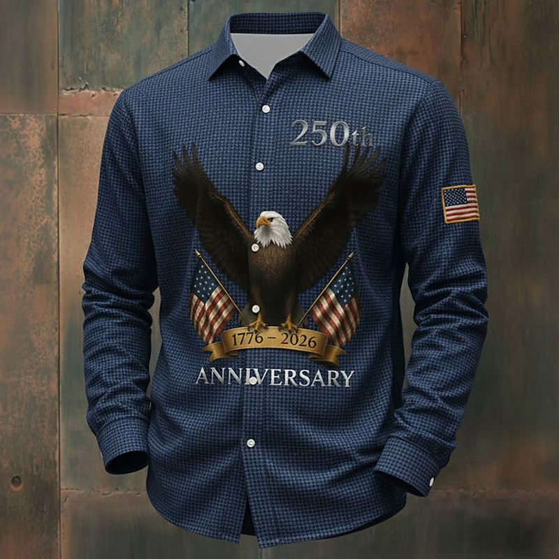 Men's Eagle US Flag America's 250th Anniversary Shirt Waffle Shirt Casual Shirt Long Sleeve Vintage Retro Dailywear Holiday Summer Spring Turndown 3D Print Textured Button Up Shirts Black Red Dark