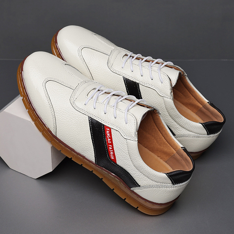 Men's White Faux Leather Lace-up Sneakers with Red and Black Stripe Detail - Trendy Footwear for Casual Outings and Travel