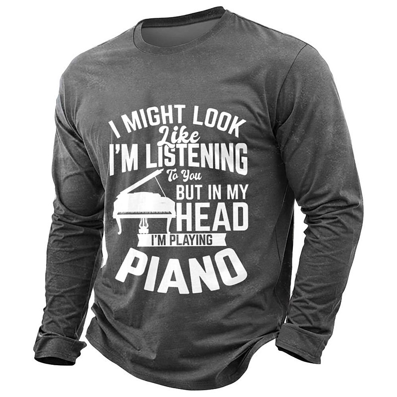 I Might Look Like I Am Listening To You But In My Head I Am Playing Piano Funny Piano Player Long Sleeve Shirt For Men Musician Graphic Tee Olive Green Music Lover Top Clothing Apparel S M L XL XXL XX