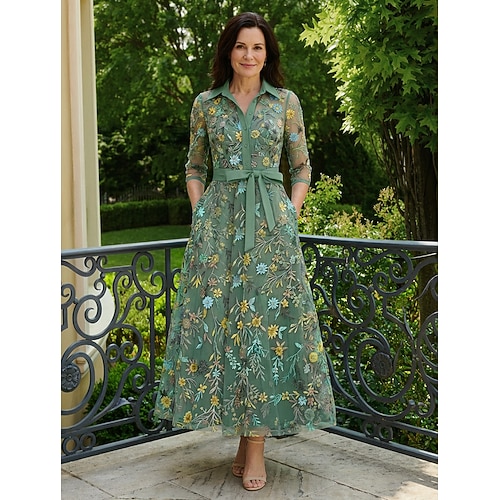 Linea ad A Abito Lunghezza alla caviglia Lunghezza Tè Abito da Cocktail Abito da invitata a nozze Abito da cerimonia per signora Manica 3/4 Mezza Manica Colletto a Camicia Elegante Casual Formale