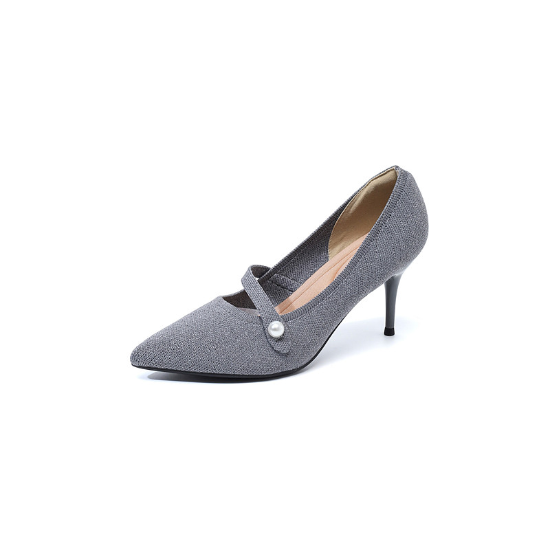 Women's Burgundy Pointed Toe Knit Pumps with Pearl Strap Accent – Comfortable High Stiletto Heels for Daily Commuting, Office Wear Elegant Professional Ladies
