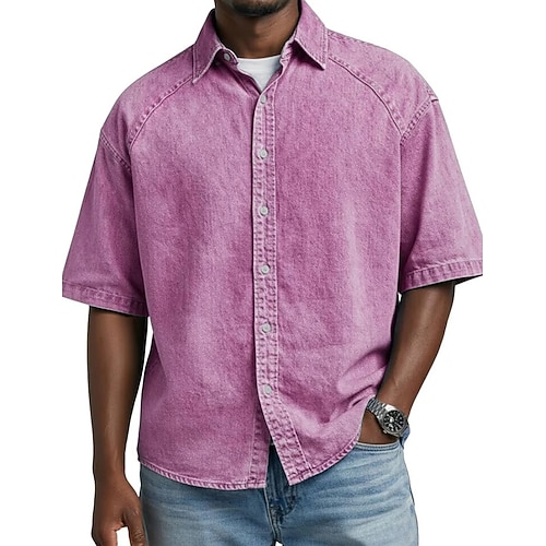 Per uomo Camicia Camicia button-down Camicia casual Camicia 100% cotone lavaggio acido Nero Verde chiaro Rosa Verde scuro Viola Manica Corta Semplice Bavero Quotidiano All'aperto Bottoni Abbigliamento